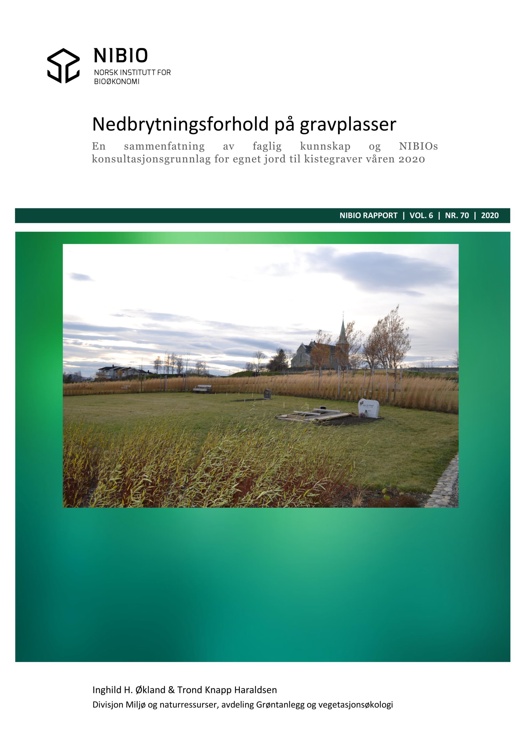 Veileder for geoteknisk vurdering ved anleggelse av gravplass – versjon 2. Forfatter: Inghild Halvorsen Økland og Trond Knapp Haraldsen, NIBIO Styringsgruppen i prosjekt «Egnet jord…